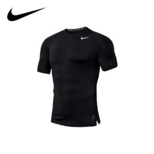 CompareOriginal Nike Tights Men PRO Round Lead Walking Training Short Sleeve Quick Drying Breathable Sports Fitness Wear Black T-shirt