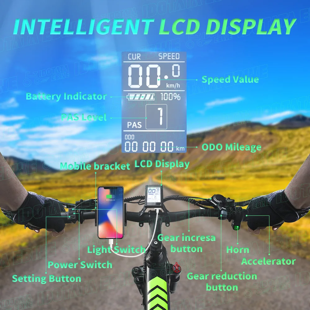 - LCD Multifunctional Display: Stay informed about your ride with the LCD display. Easily check data such as speed, battery level, odometer, and more. Adjust the pedal assist level based on road conditions.