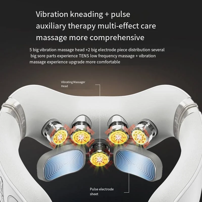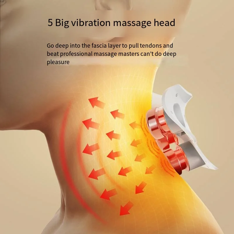 - Vibrating Silicone Heads: Equipped with 5 independent vibrating silicone heads, mimicking human hands to provide a 9D massage on acupoints, effectively relieving muscle fatigue.