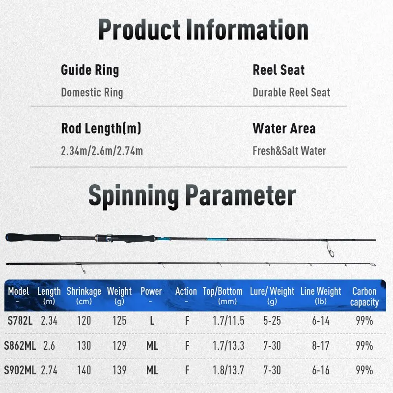 🌊 S902ML: Long-Distance Casting Specialist 🌊 For those seeking long-distance precision, the S902ML is your perfect companion. Whether casting for boat games, sea bass, perch, or rockfish, this model’s dynamic structure, combining soft chori and a powerful waist, ensures the perfect flexion balance. Experience increased hook set probability and extended casting distances with this exceptional rod.
