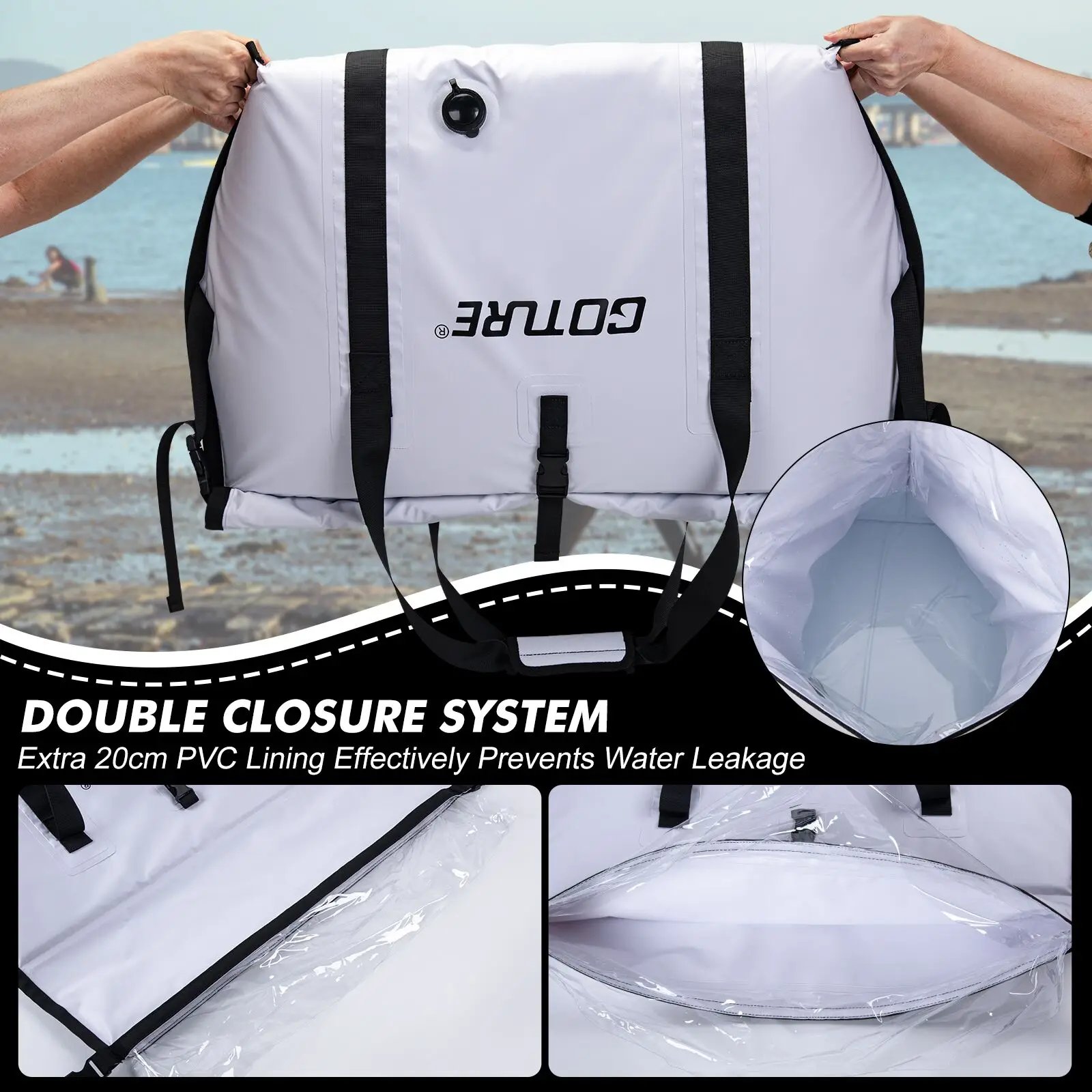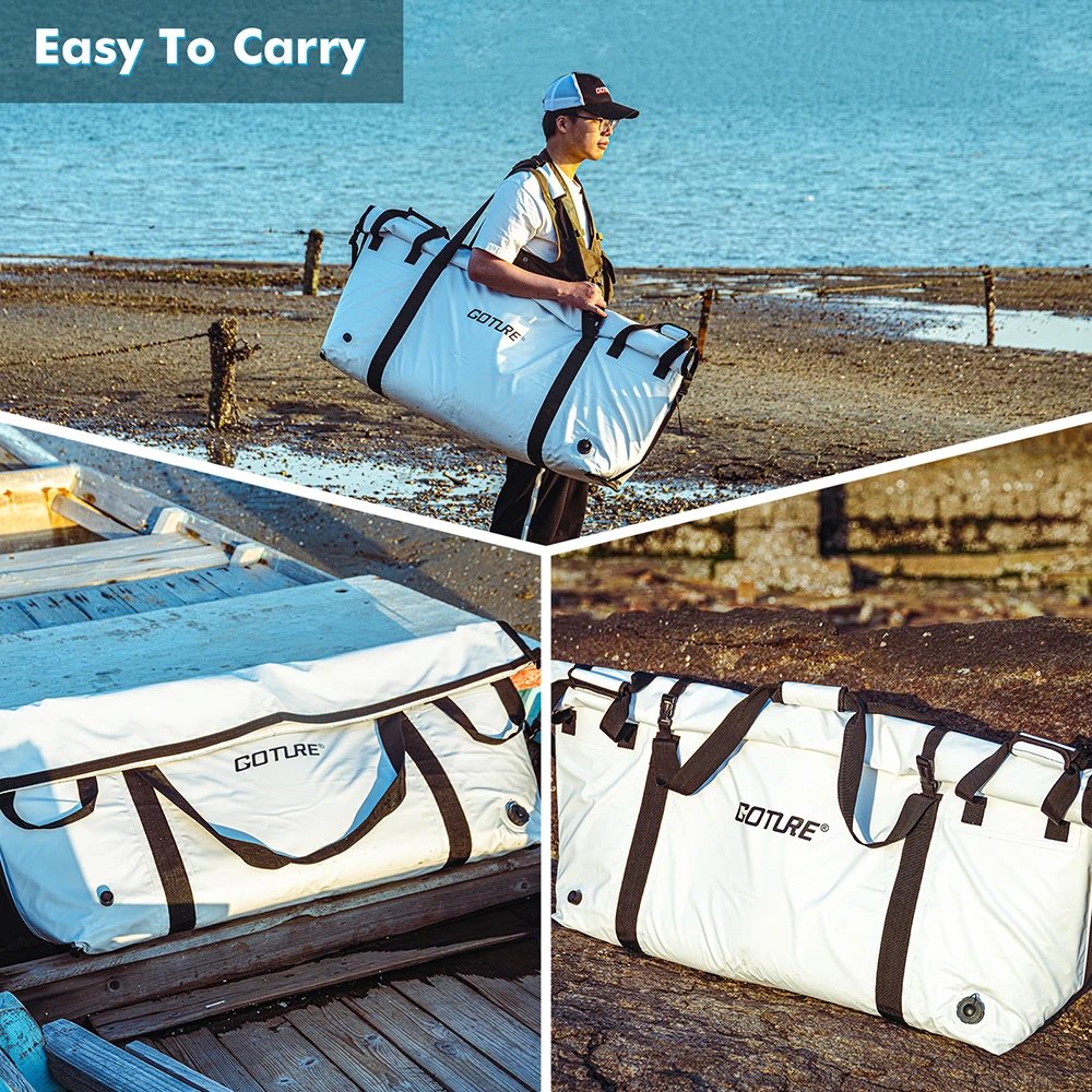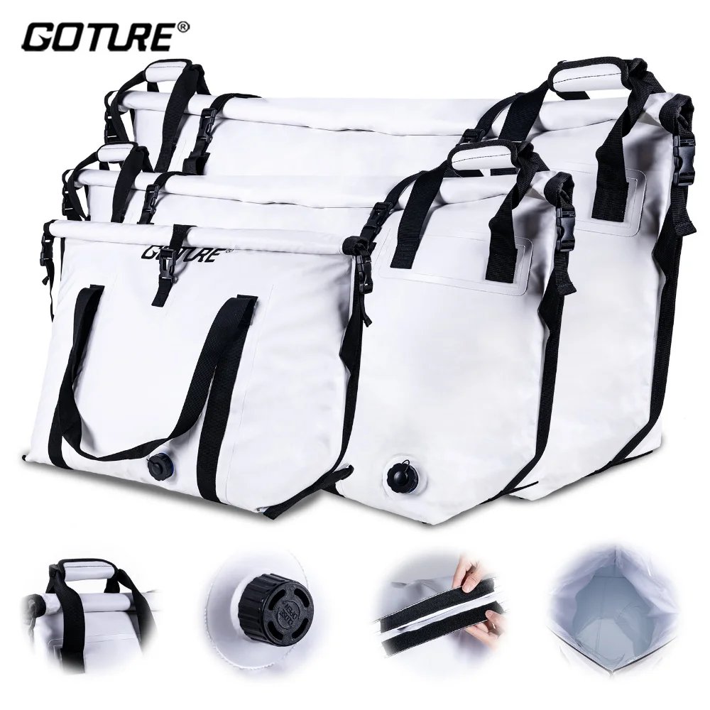 Goture Insulated Fishing Cooler Bag Expended Bottom Waterproof Marine Freezer Bag Portable Fish Transport Bag for Boat Fishing