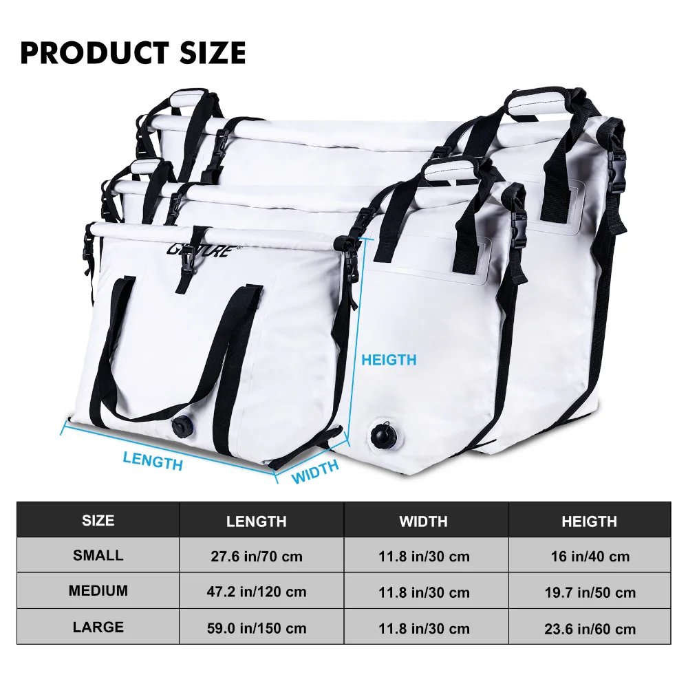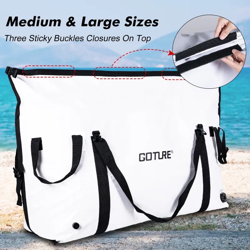 • With a flat bottom design and three available sizes (small, medium, and large), our fish cooler bags can accommodate more fish while taking up less space.