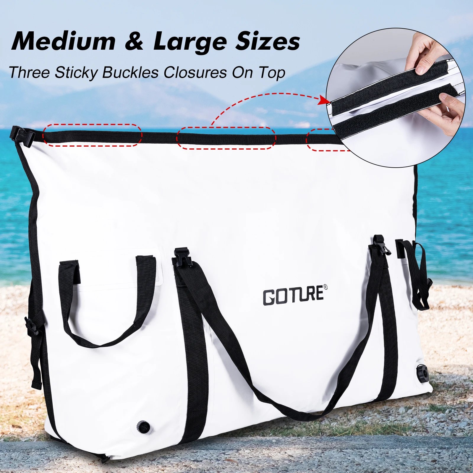 • The folding roll-up closure with heavy-duty buckles provides a secure seal, keeping your catch fresh even in the harshest conditions.
