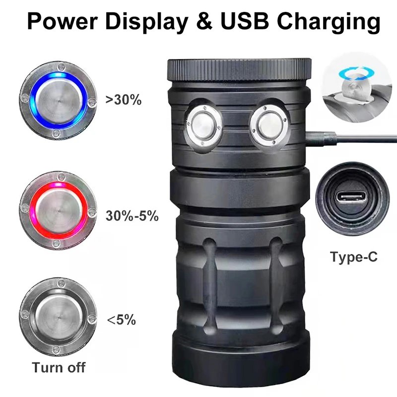 D10 Diving flashlight ( Built-in 3*4800mah 21700 power battery) + Type-C + Waterproof Ring + Coin + Screw + Rocket Screwdrivers + Handle Bracket + Bracket + Packing Box + USB Charger Connector (EU/US/AU/UK)