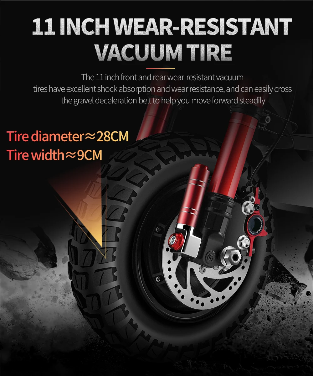 Off-Road Dominance: Conquer every slope with ease, thanks to the 11-inch off-road tires. Designed for off-road adventures, these tubeless tires ensure optimal performance, making the MX11 more than just a daily commute companion—it’s your ticket to unexpected fun.