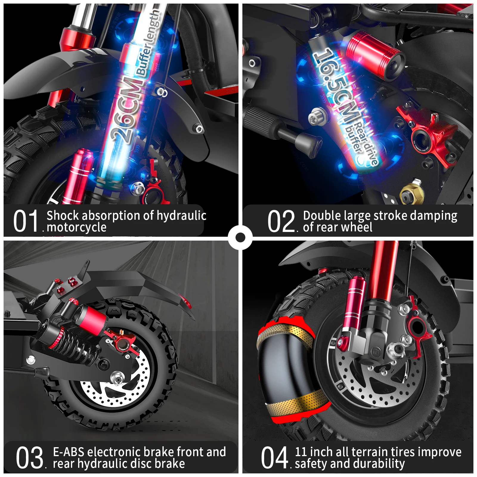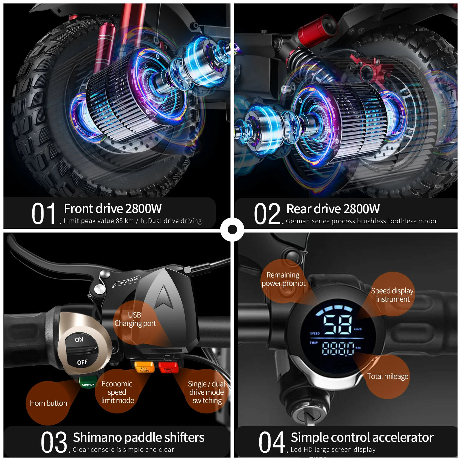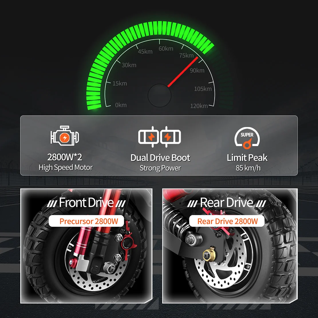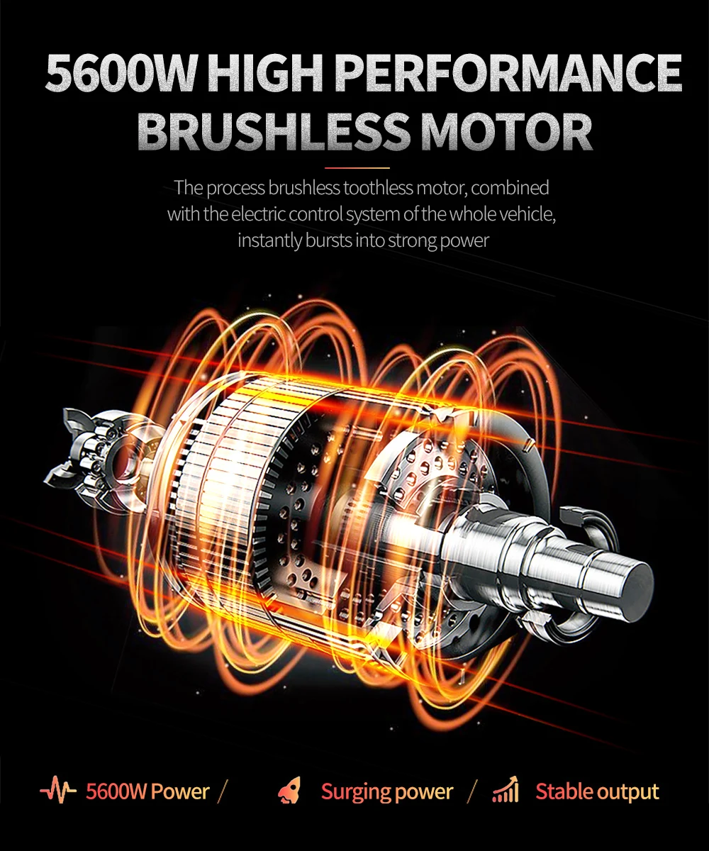 Dynamic Dual Motor: Feel the force of the 5600W dual motor—2800*2 of high-performance power that not only delivers a sports car-like acceleration but also maintains stable output for a thrilling ride.