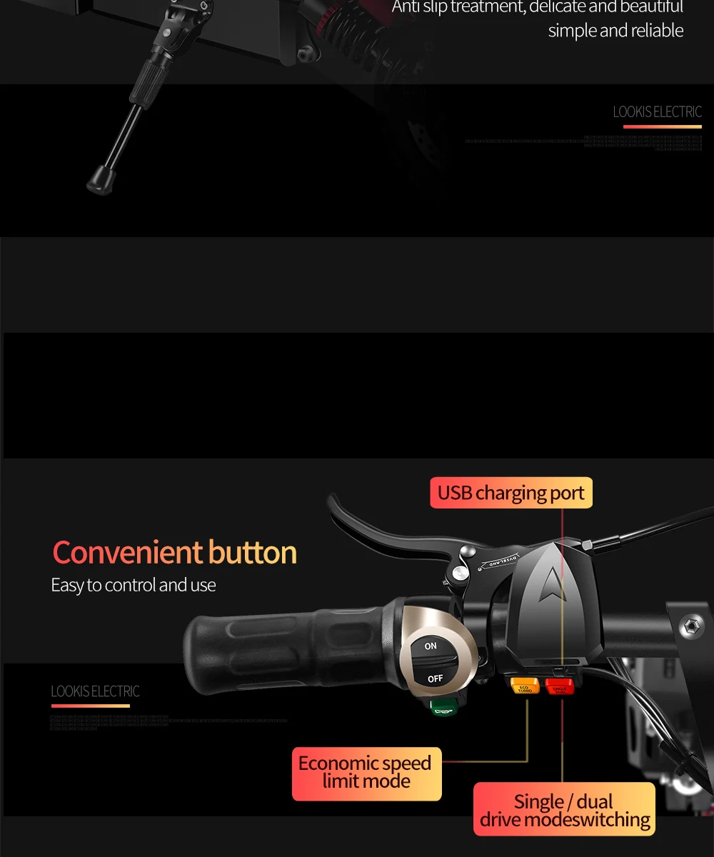 Advanced Suspension System: Navigate complex road conditions effortlessly with the hydraulic front shock absorber boasting a 26cm shock absorption amplitude. The rear shock absorber complements this with a 16cm amplitude, ensuring a smooth ride through any terrain.