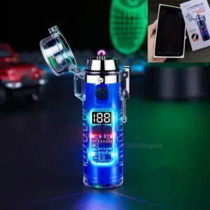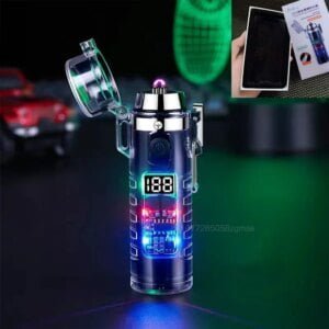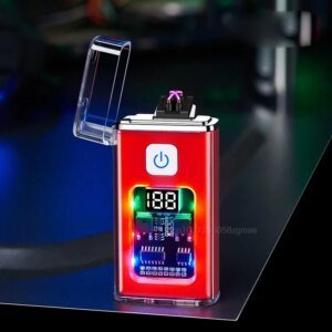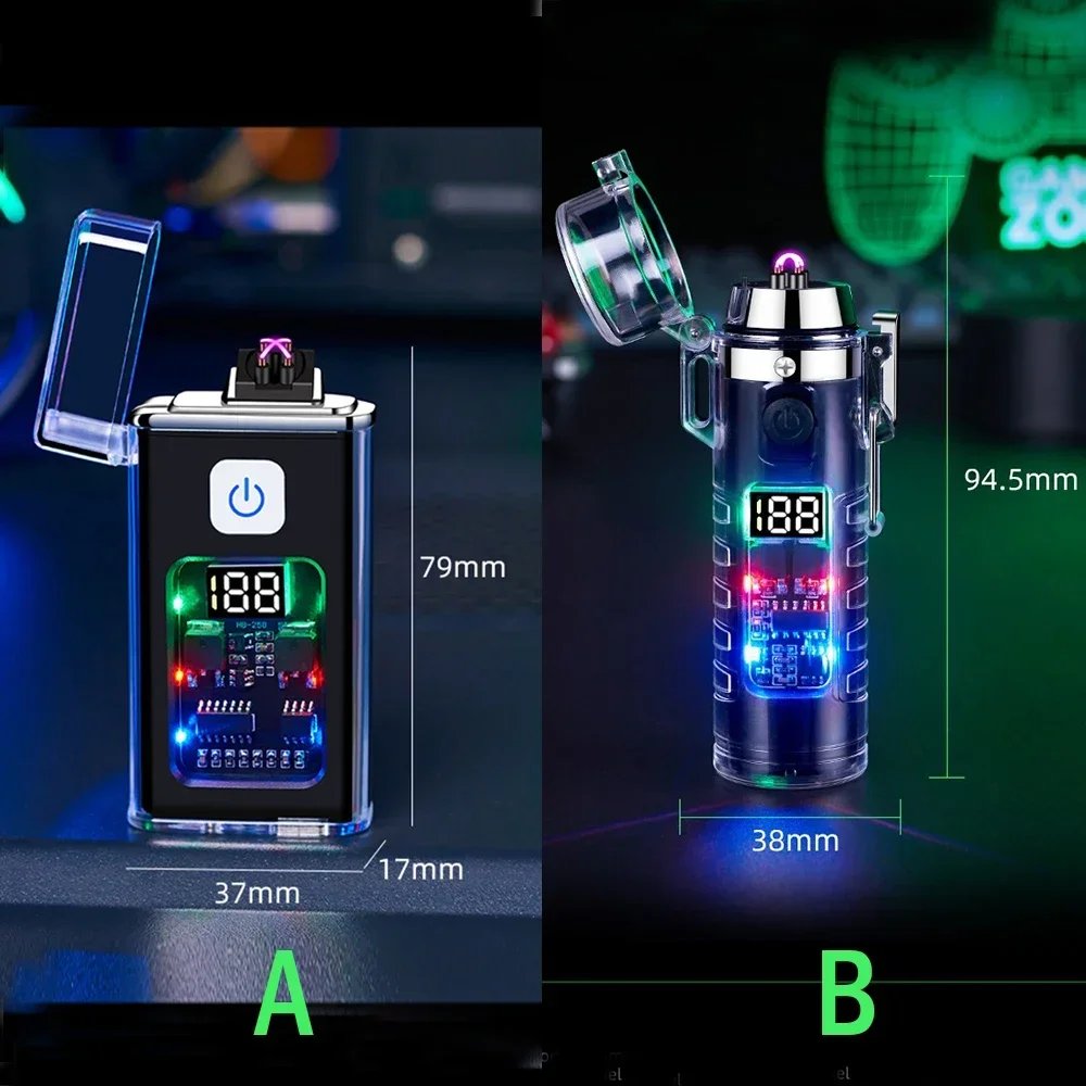 New Transparent Shell Waterproof and Windproof Outdoor Double Arc Lighter Digital Power Display USB Electronic Cigarette Lighter